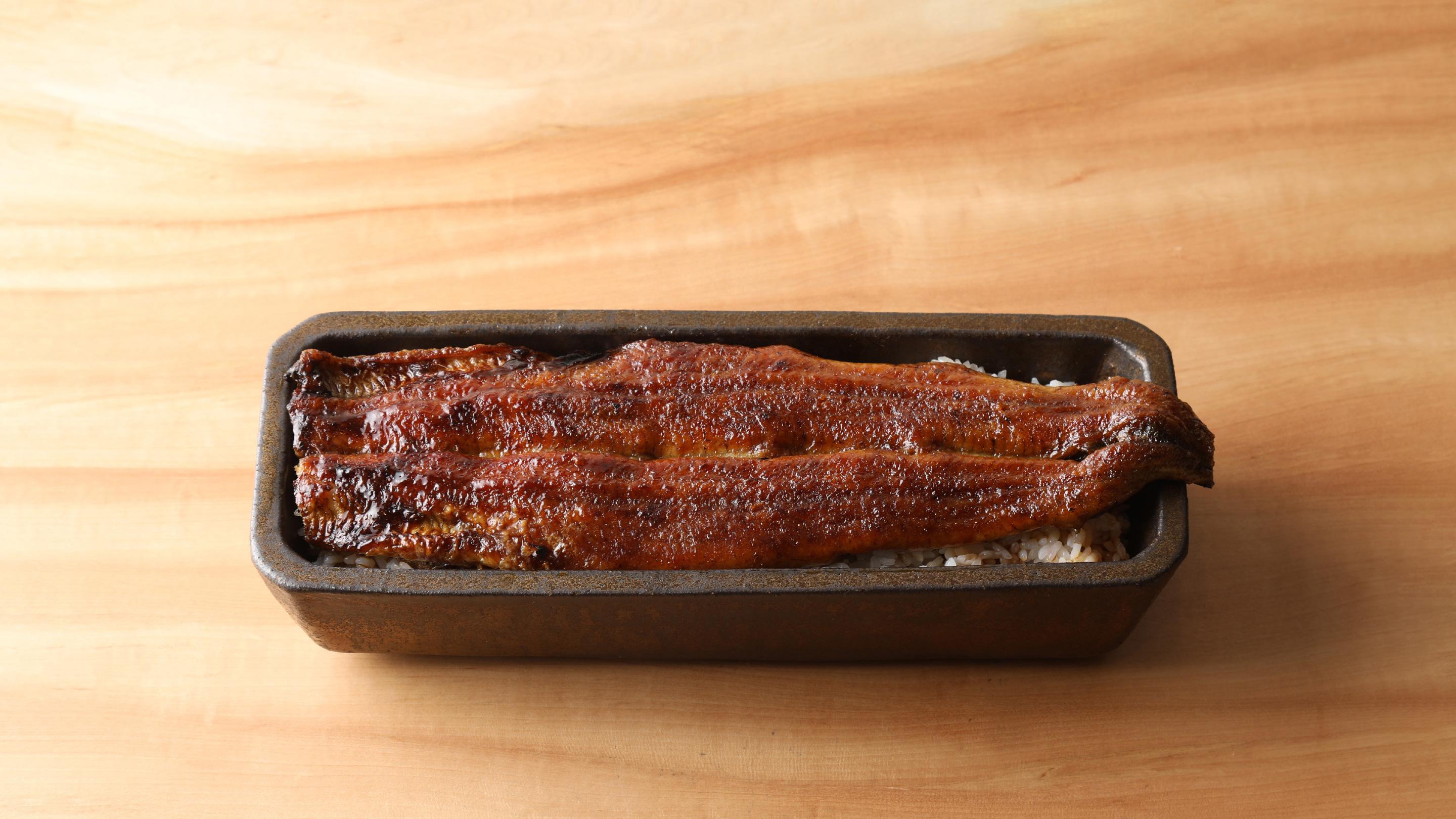味わっていただきたい食感から逆算して、一般的に使われるうなぎよりもひと回り大きなこのうなぎは、皮目を香ばしく焼き上げても身が縮まない肉厚で、強い火力にも負けない程の脂がのっています。