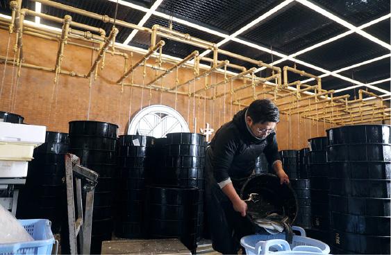立場(たてば)。そこは、先祖から受け継ぎ、守り抜いた、うなぎのための貯蔵施設。地下200メートルの井戸水を汲み上げたその場所で、まずは、うなぎをひと休み。井戸水で泥を抜くことで特有の臭みがとれ、素材の質が磨かれます。